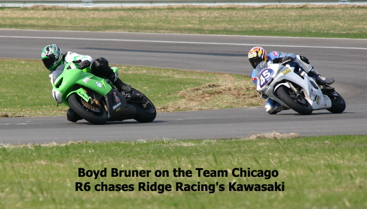 Boyd turned the Team Chicago R6 to Alan, but the bike was faltering. It would