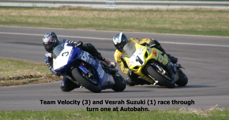 Team Velocity and a fast moving Bell’s Suzuki. On the second lap, Roger Bell