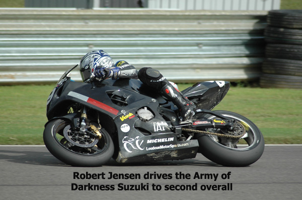 With the help of Robert Jensen, Army flew to second overall, one lap shy of Vesrah during the second hour. Local heroes, Lucky 7 Racing, moved to ninth and the Honda boys, Team HMR, took tenth. TVR 2 took the lead in the Middleweight SuperStock class taking seventh overall, right in front of Dalke in eighth.