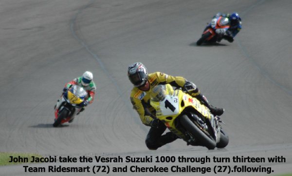 fourth place in the Middleweight SuperStock class. RESULTS: Overall: 1.Vesrah Suzuki, Suz 1000,