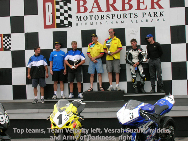2. Army of Darkness, Suz 600, 3. Team Velocity Racing, Yam 1000, 4. Red Star,