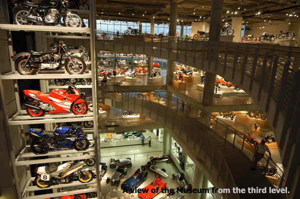 500 and 600 bikes on display at any time. The top level contains motorcycles that represent Barber’s