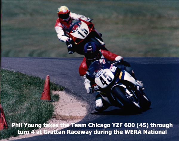 Fury. Phil Young joins Dan Schmitt in riding the Team Chicago Yamaha YZF 600.. #475, WERA Nat’l Grattan Raceway,