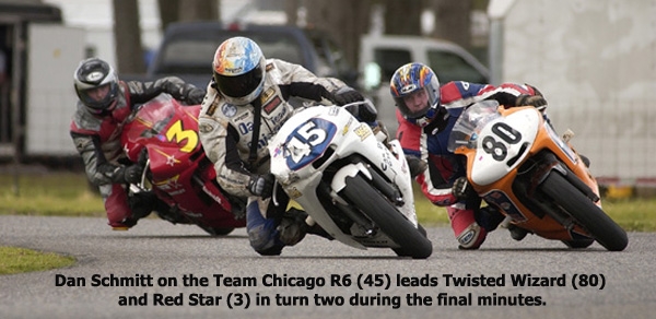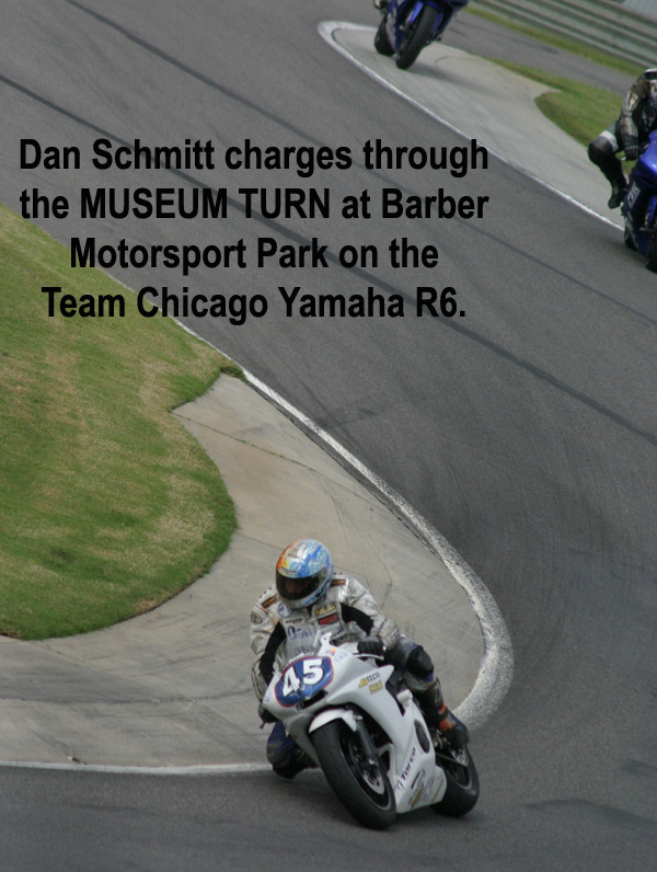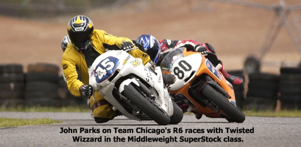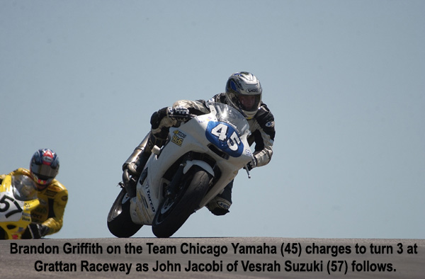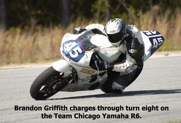 Brandon Griffith hangs on with the Team Chicago Yamaha R6. Steve Karson records